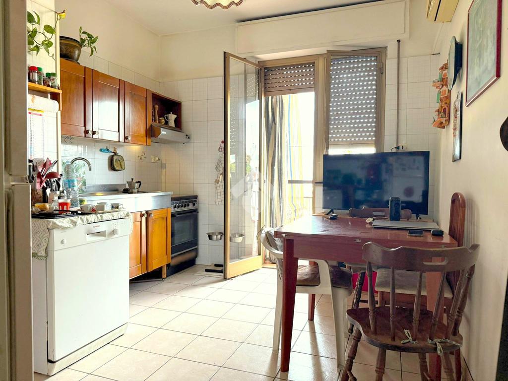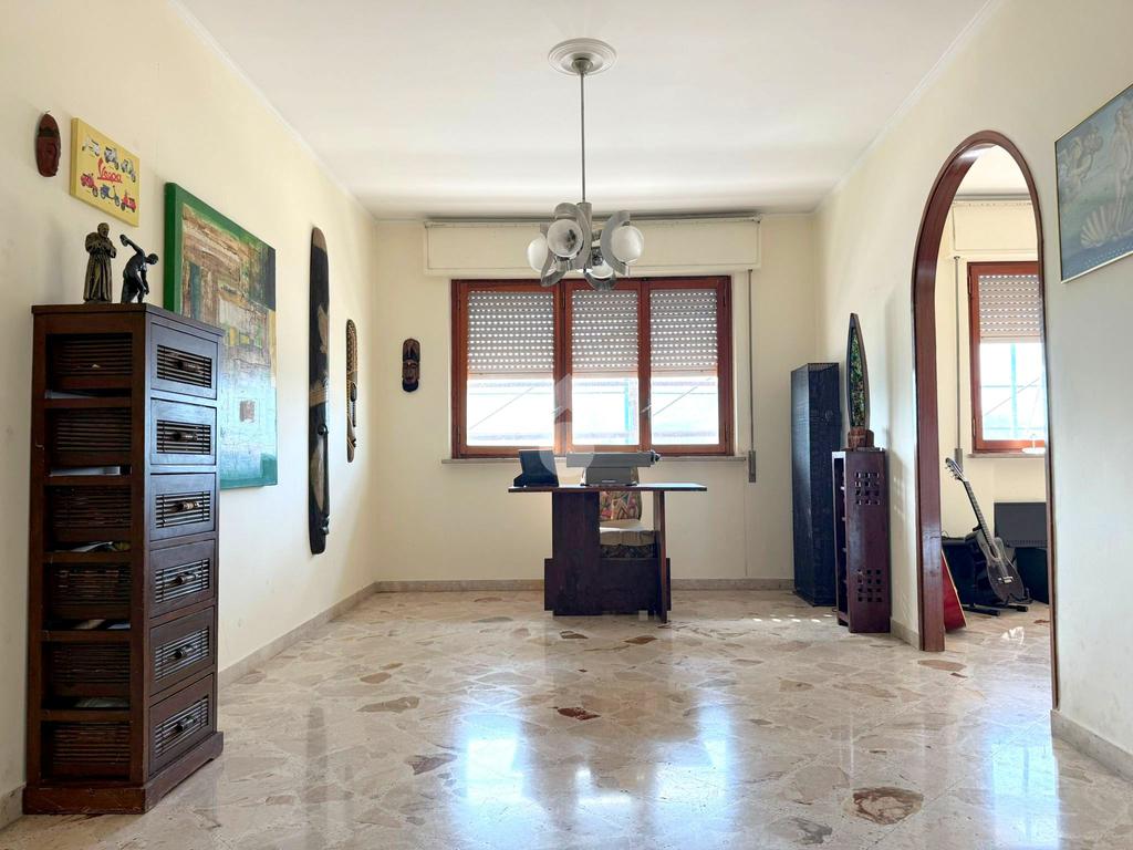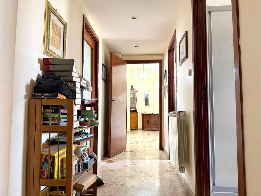 L'appartamento, con ingresso su ampio disimpegno, è valorizzato dalla vista panoramica dei suoi balconi. L'ingresso sul disimpegno separa il corridoio dal salone doppio con balcone; sono presenti tre camere da letto matrimoniali con balcone e finestra e la spaziosa cucina abitabile. Completano l'immobile i due servizi ed il comodo ripostiglio.