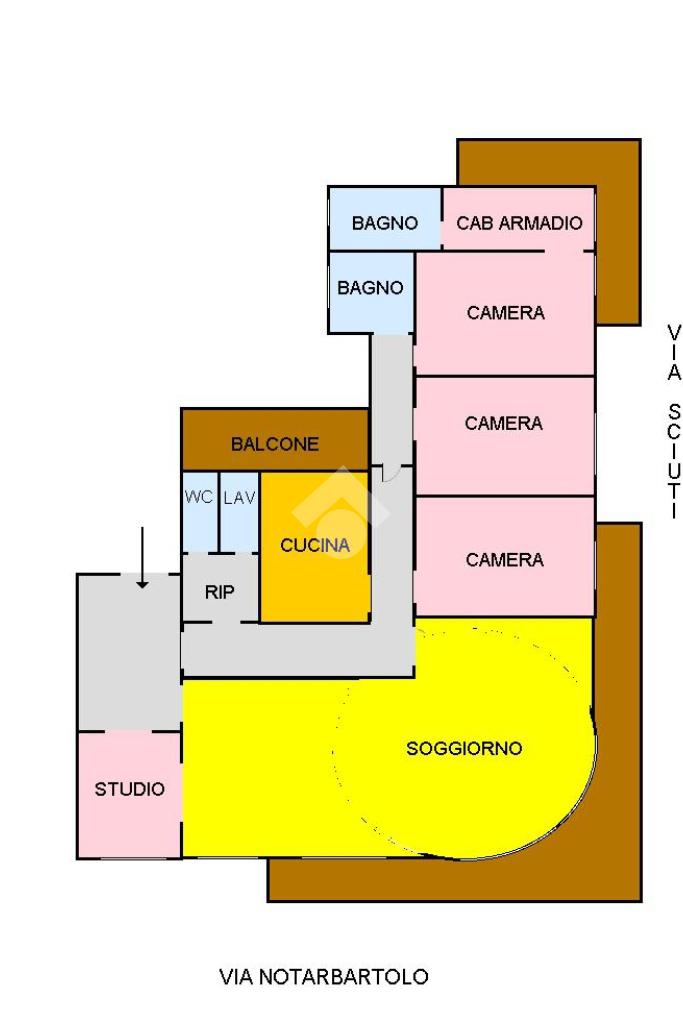 Via Notarbartolo, angolo con Via Sciuti, Situato in una delle zone più servite della città, l'immobile gode di una posizione strategica grazie alla vicinanza con la stazione ferroviaria di Notarbartolo e alla linea tranviaria. Il quartiere è ricco di attività commerciali di ogni genere: bar, supermercati, farmacie e altri servizi essenziali, oltre alla presenza di scuole di ogni ordine e grado.