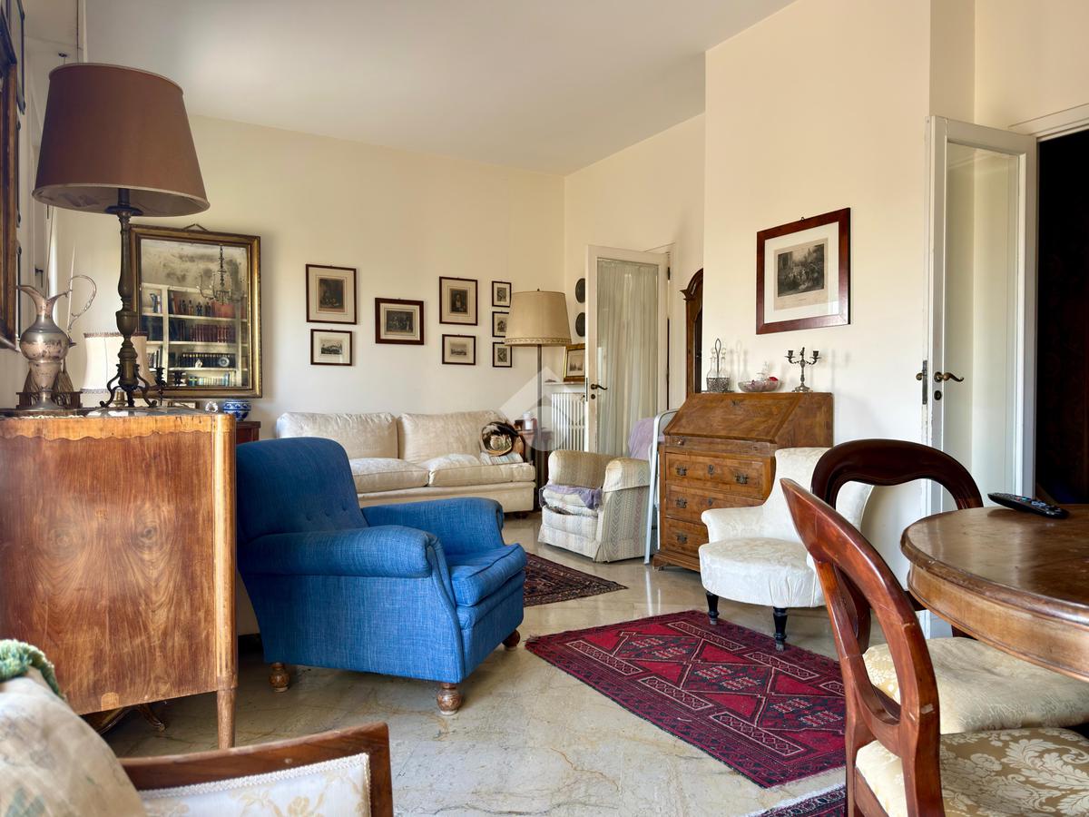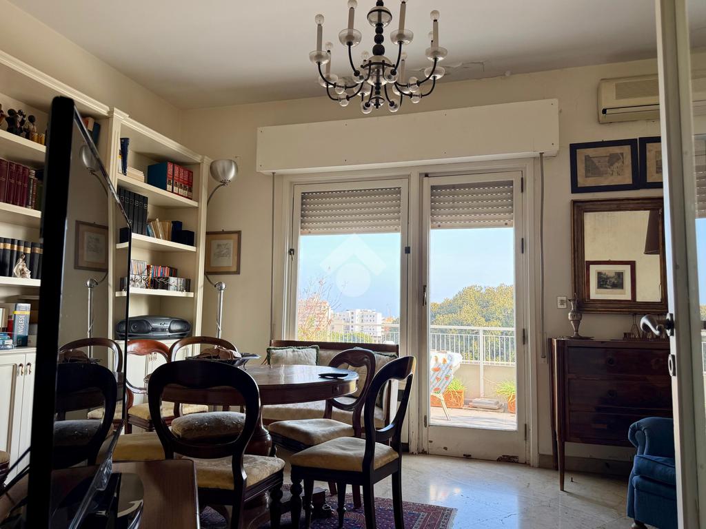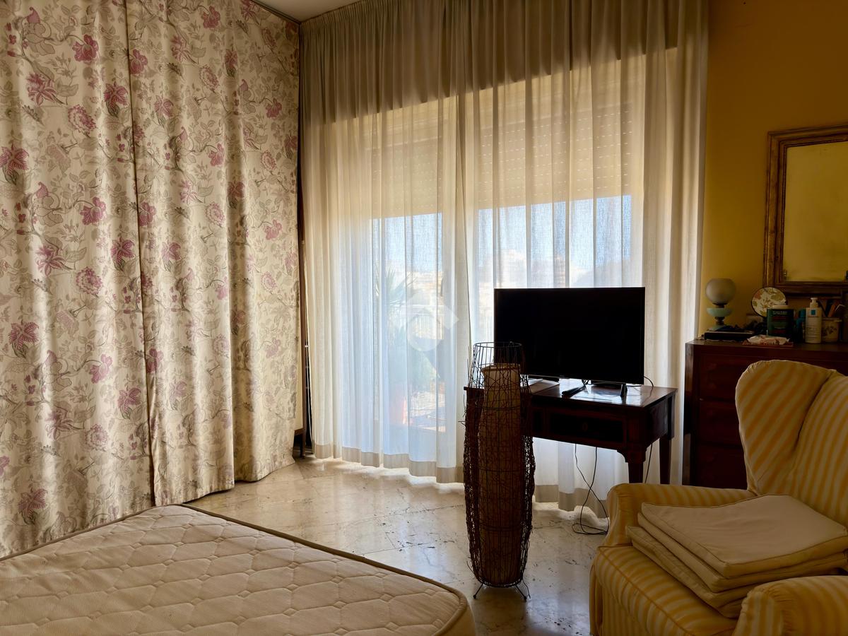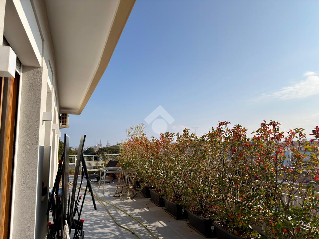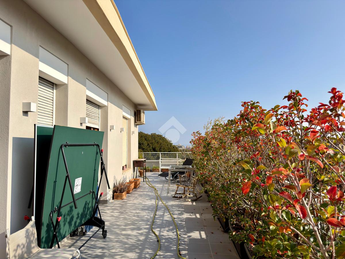 L’appartamento si apre su un ampio terrazzo angolare di circa 100 mq con una vista che abbraccia la città, regalando scorci suggestivi che, nei giorni più limpidi, arrivano fino al porto e all’orizzonte del mare. La luce naturale inonda gli spazi, offrendo un’esperienza abitativa di grande fascino.