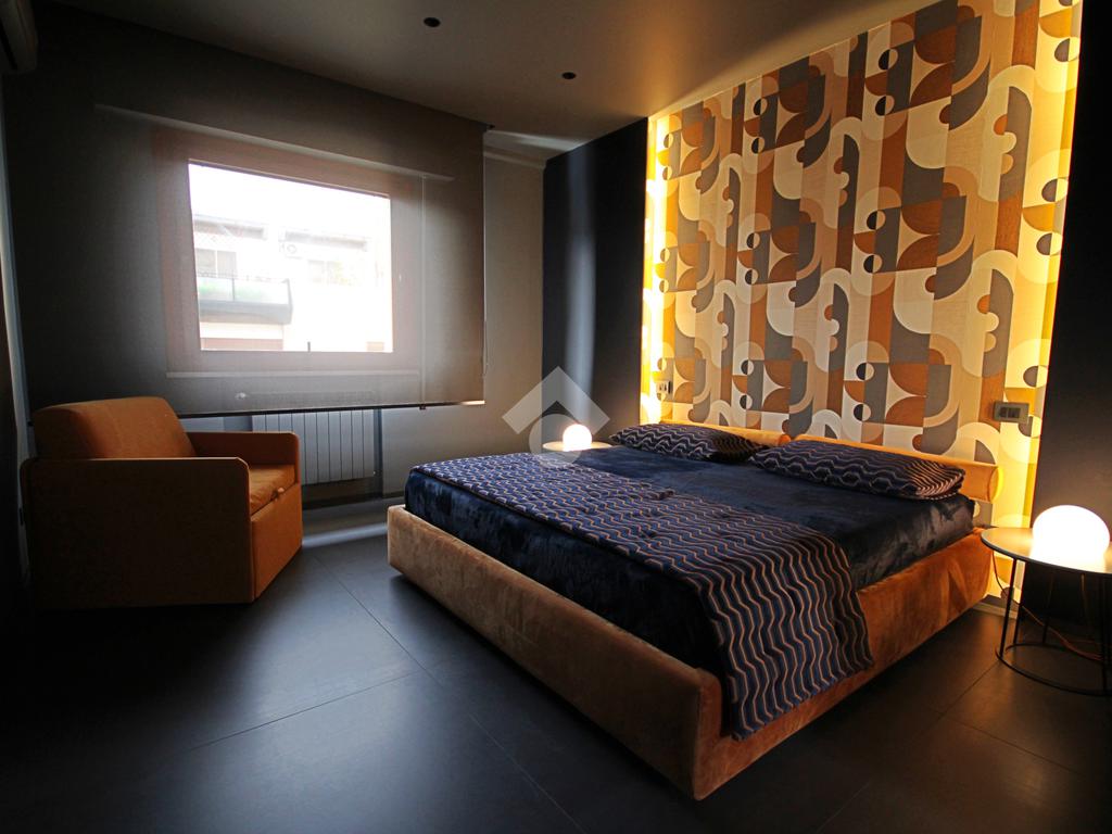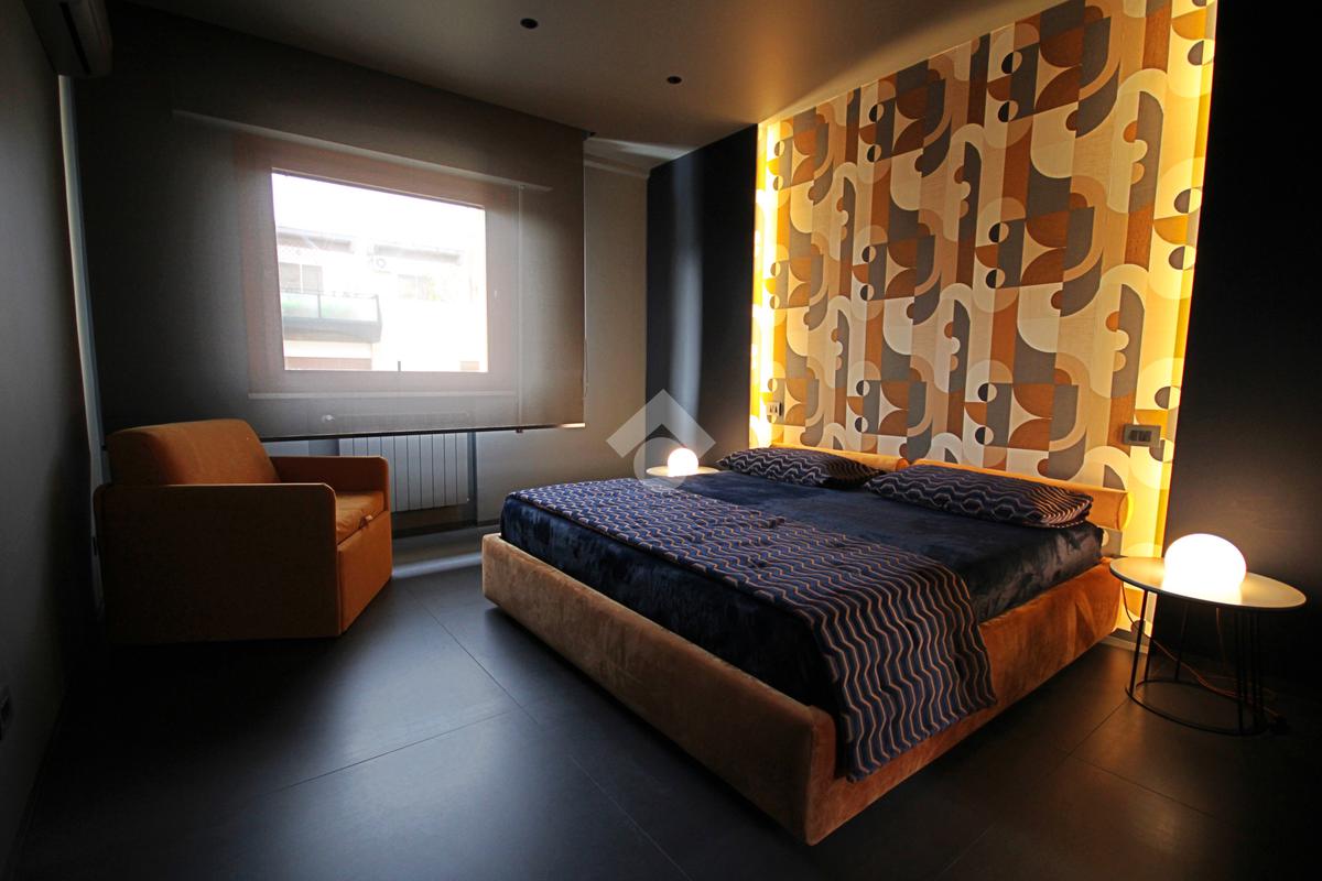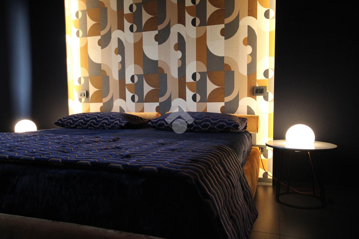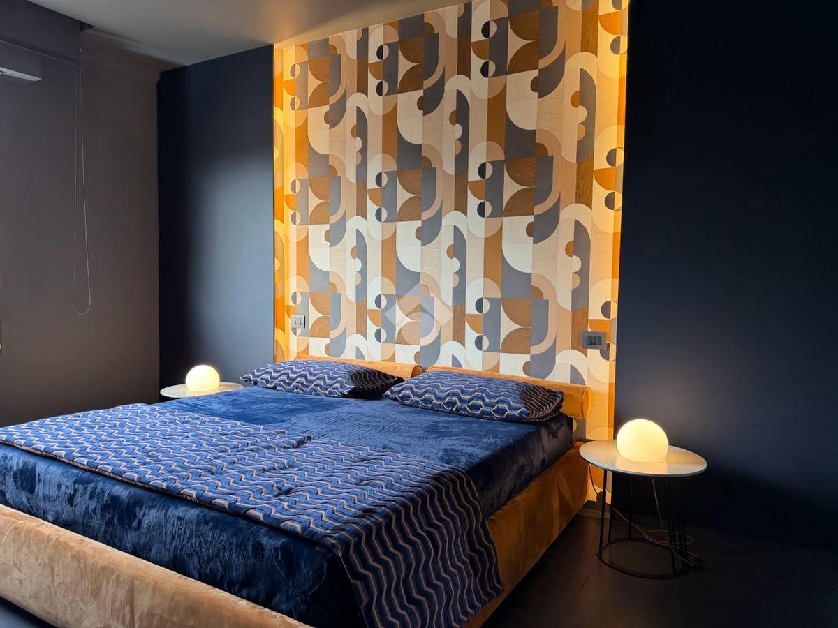 La zona notte, accessibile attraverso un disimpegno con secondo ingresso, ospita due camere da letto dal carattere sofisticato, impreziosite da illuminazione architettonica a LED e rivestimenti decorativi su misura, pensati per garantire comfort e atmosfera.