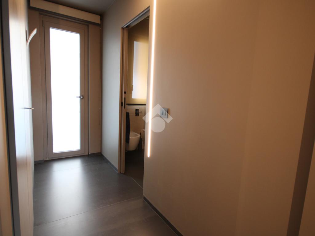 Ulteriore elemento di prestigio è rappresentato dall’accesso tramite serratura elettronica, affiancato da un impianto di illuminazione centralizzato con gestione su scheda, che garantisce comfort, sicurezza e un’esperienza abitativa all’insegna della tecnologia e della modernità