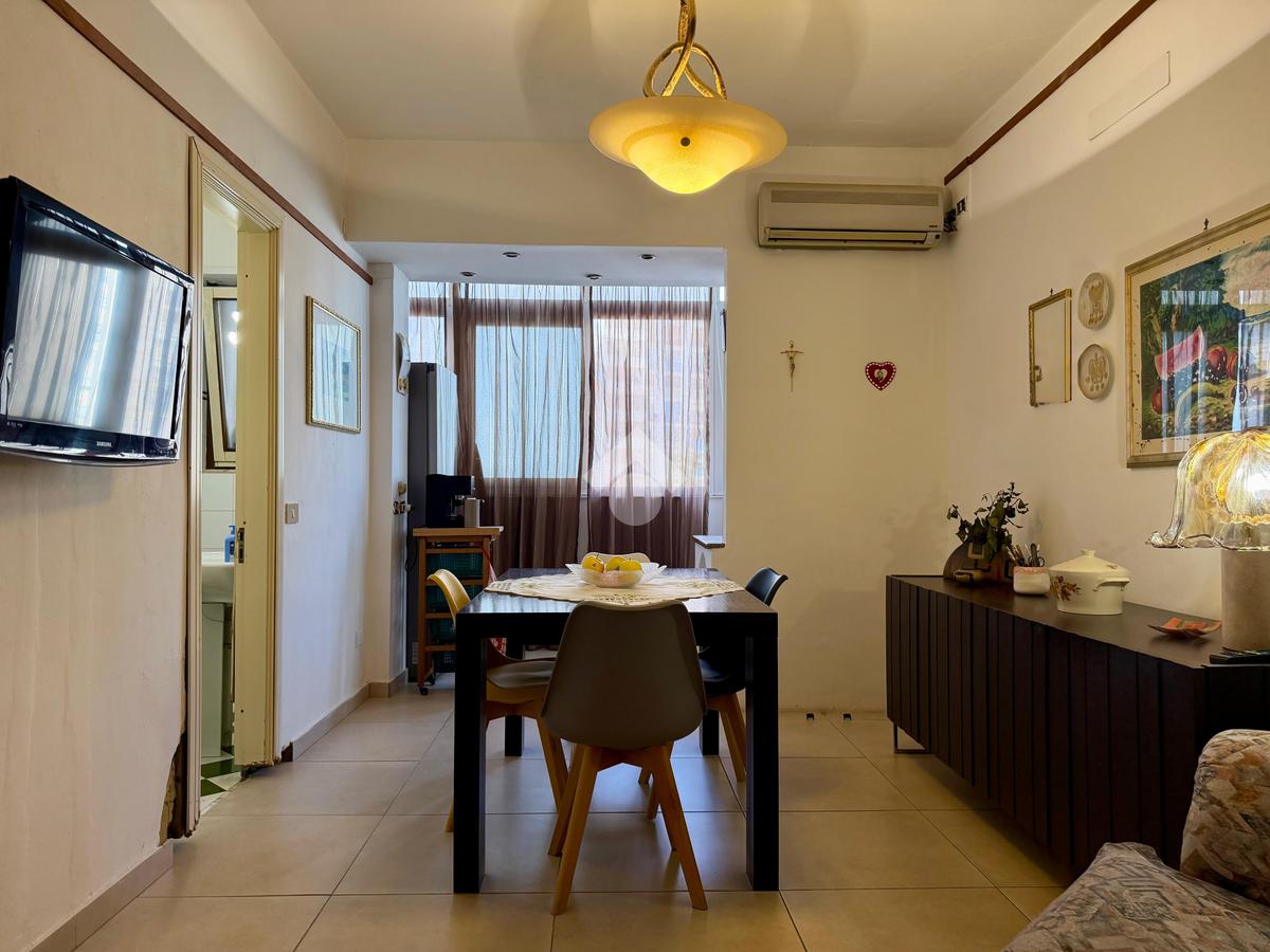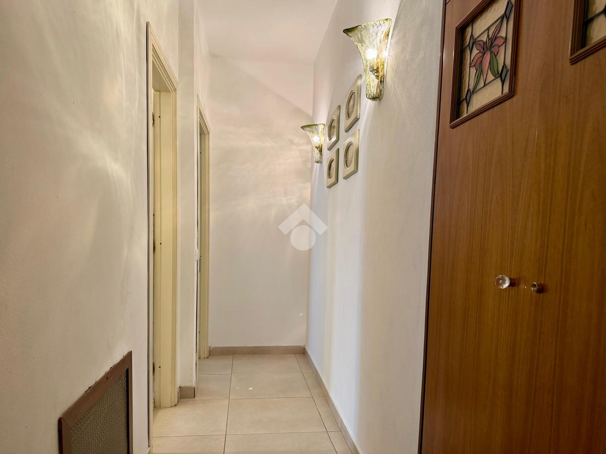 L’appartamento è caratterizzato da un primo ingresso in condivisione, seguito da un ingresso privato che conduce direttamente ad un accogliente soggiorno con balcone verandato e cucina adiacente. Un corridoio di disimpegno collega la zona giorno alla camera da letto matrimoniale e al bagno dotato di doccia.
